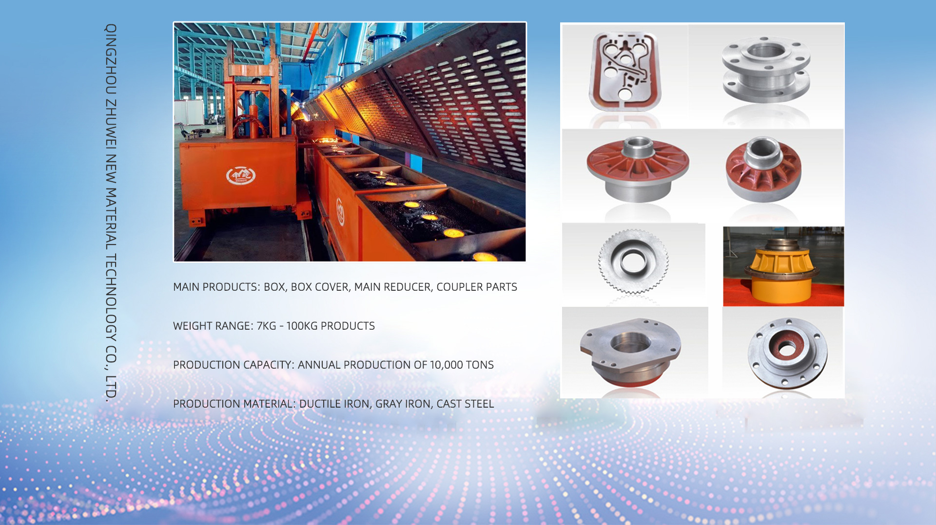 ABOUT USQingzhou Zhuwei New Material Technology Co., Ltd. is located in Caterpillar Industrial Park, Qingzhou City, Shandong Province, the former township enterprise was restructured in 2016 by Qingzhou Chunguang Casting acquisition, is a collection of mechanical parts, casting research and development and production, processing as one of the precision casting high-tech enterprises. The company covers an area of 160,000 square meters, the factory construction area of 100,000 square meters, the company's fixed assets of 120 million yuan, the existing staff 178 people, including engineering and technical personnel and all kinds of professional management personnel 37. |